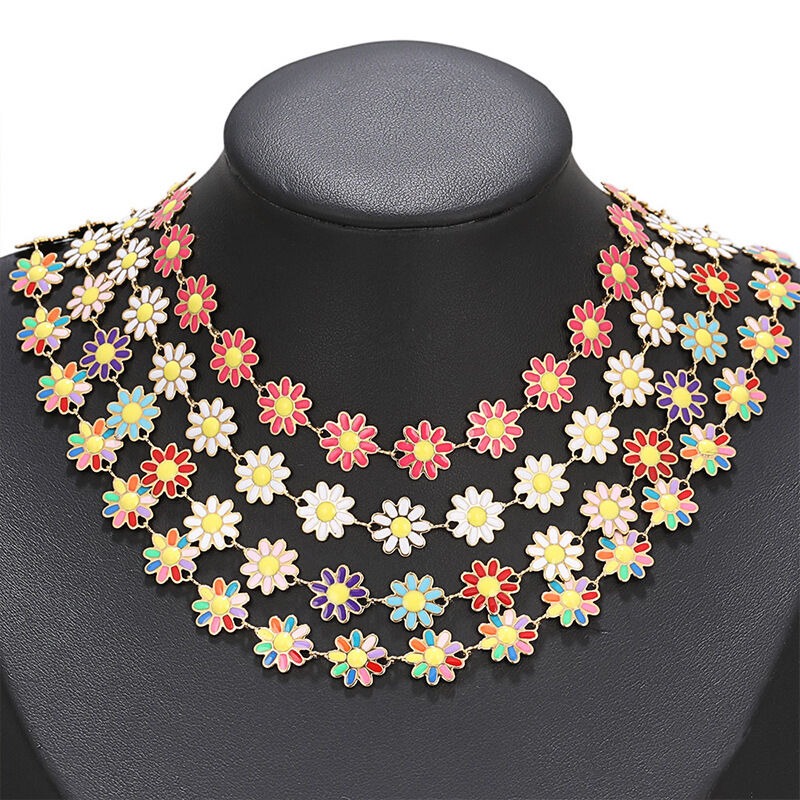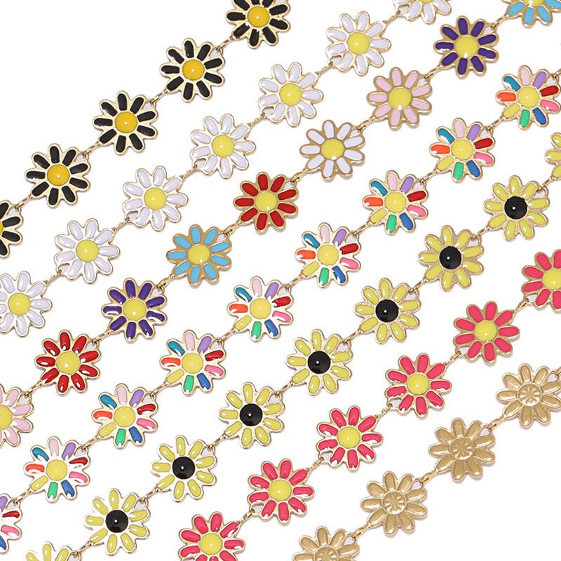 Gold Color Stainless Steel Colorful Enamel Flower Chains for DIY Jewelry Making Bracelets Findings Necklaces Craft Accessories